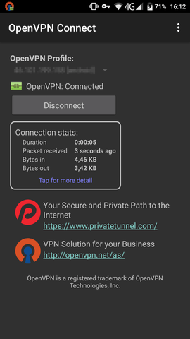 /root/android.ovpn) to your Android device (e.g. SD card) and import it in the app: